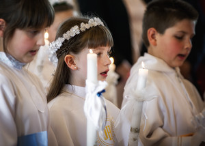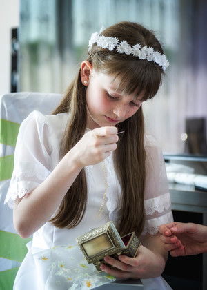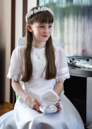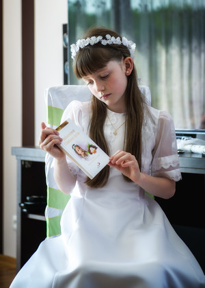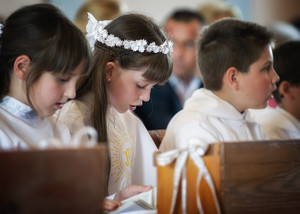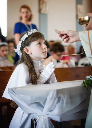 Pierwsza Komunia Święta Mai z Nowego Lubosza, przyjęta w parafii p.w. św. Karola Boromeusza w Kościanie.