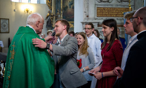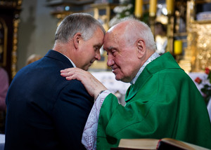 ks. proboszcza Czesława Bartoszewskiego z parafianami. Proboszcz 1 lipca przeszedł na emeryturę.